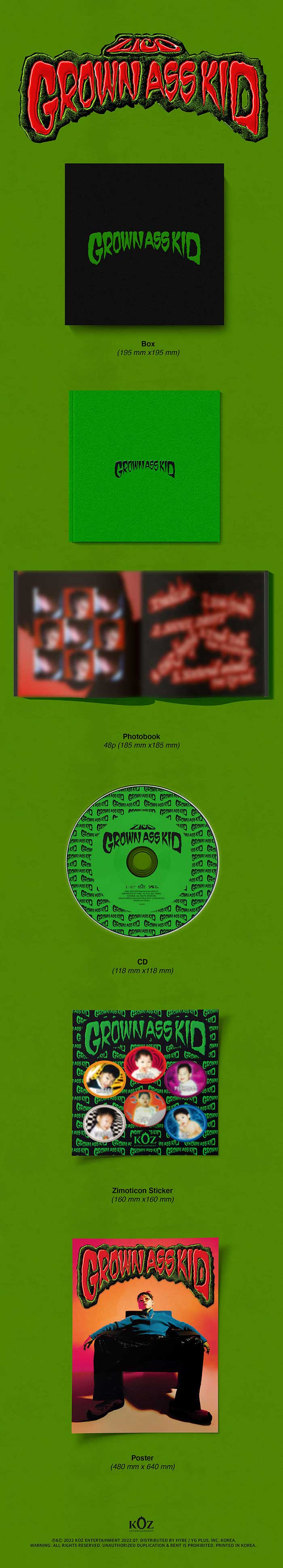 ZICO – Grown Ass Kid is ZICO’s fourth mini-album, released on July 27, 2022 via KOZ Entertainment. This EP marks his comeback after military service, featuring the lead single Freak. Grown Ass Kid includes five tracks, with collaborations featuring Changmo and Zior Park, where ZICO channels growth, past lessons, and determination through both rap and melodic tracks. A must for ZICO fans wanting music with depth and personality.